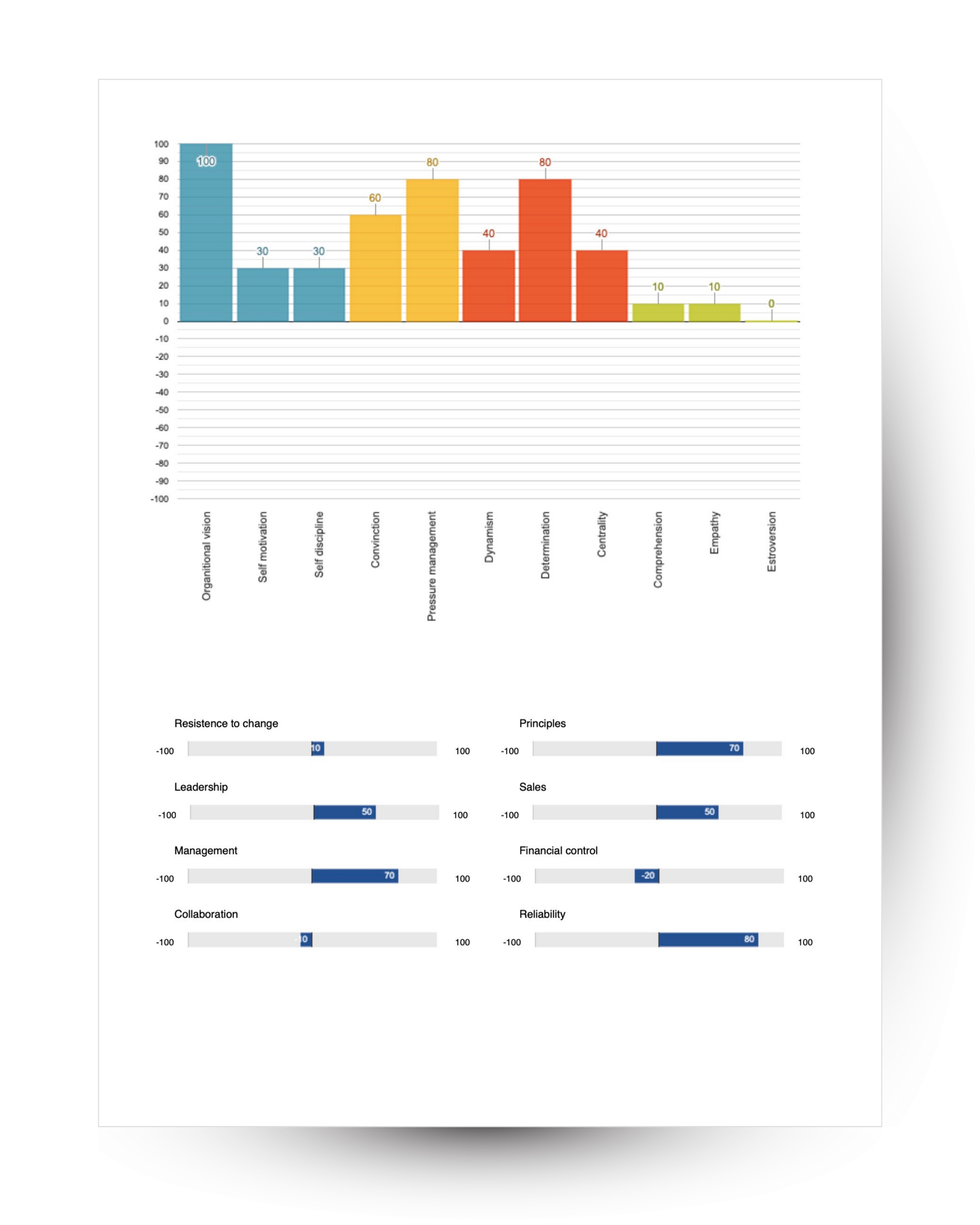 Official report – Your client receives a personalized document including behavioral profiles, efficiencies, inefficiencies, and tailored action points.